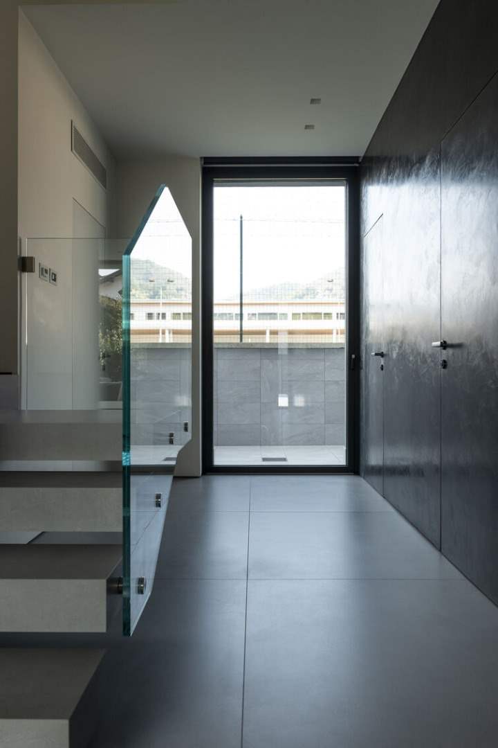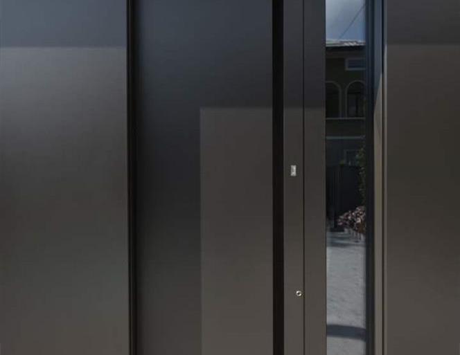 Inoltre abbiamo realizzato la porta d'ingresso principale con serratura motorizzata con riconoscimento di impronta digitale e sistema Schuco Bluecon, che tramite l'uso di un'apposita app permette di aprire / chiudere la serratura della porta tramite smartphone.